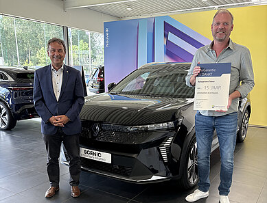 Maikel Simonis (salesmanager CG) en Joris Simons van Lenferink Auto's Almelo