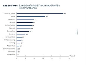Sowohl bei gebrauchten als auch bei neuen Motorrädern folgt auf Platz 2 die elektrische Anlage. Bei gebrauchten Bikes beträgt ihr Anteil 23,5 % (Vorjahr: 23,2 %), bei neuen Bikes 24,8 % (Vorjahr: 25,5 %). Auf Platz 3 liegt in beiden Fällen das Getriebe. Bei gebrauchten Bikes ist es für 9,0 % der Kosten verantwortlich (Vorjahr: 11,7 %) bei neuen Bikes unverändert für 11,4 %.