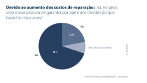Um fator-chave para este desenvolvimento é a situação económica de muitas famílias. Face ao aumento do custo de vida e ao significativo incremento do custo de muitas reparações, os clientes procuram cada vez mais formas de proteção. 70% dos concessionários relatam um aumento na procura de garantias para veículo de ocasião nos últimos cinco anos. As garantias com períodos de duração mais longos são as mais procuradas: 55% dos concessionários observam um interesse crescente em garantias com prazos de 24 meses ou mais.